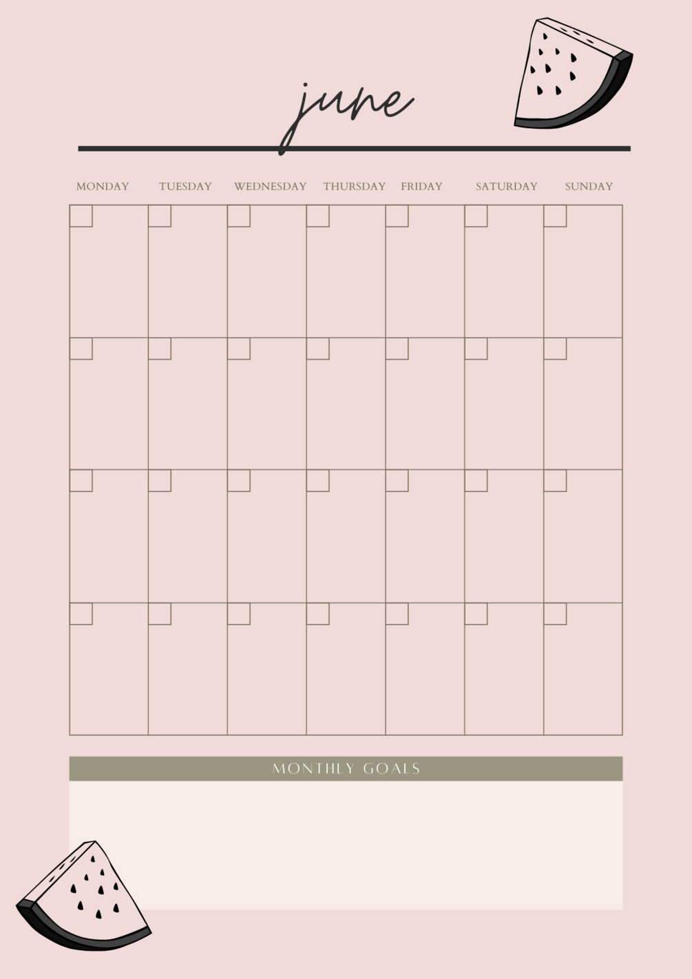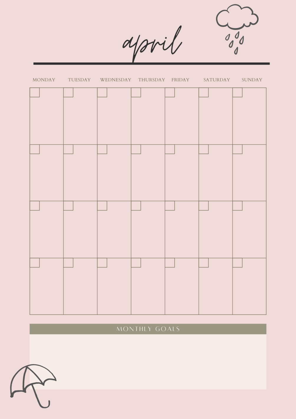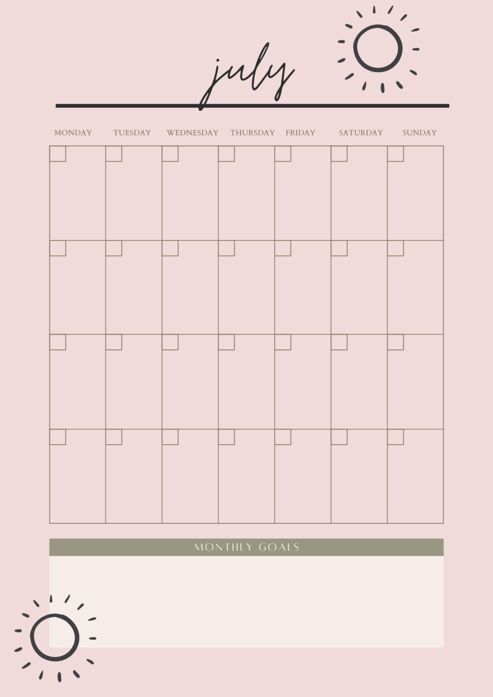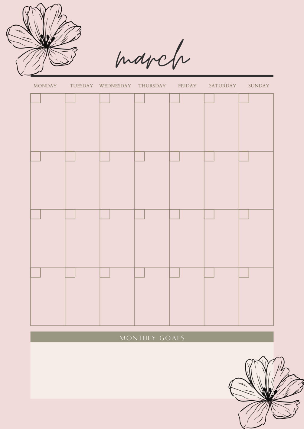 This planner has everything you need to plan your year month to month! The blanks for dates allow this calendar to reused again and again. The monthly goals box allows you to easily set and see your aspirations for the month.